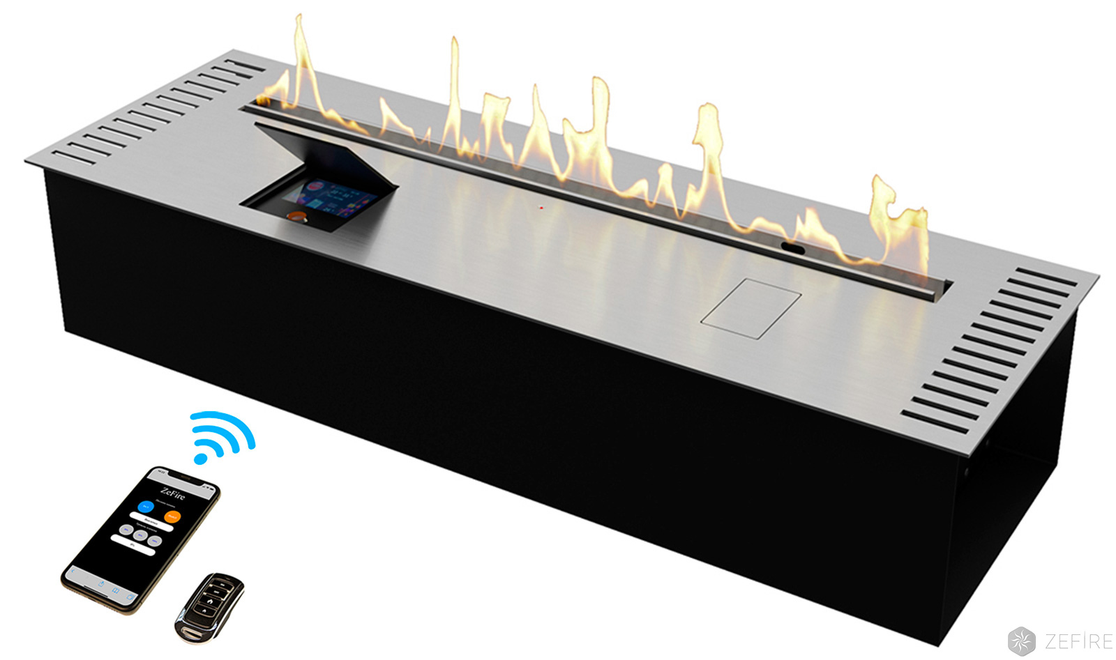 2) Встроенный Wi-Fi модуль, который создает точку для управления камином с помощью смартфона или планшета;
