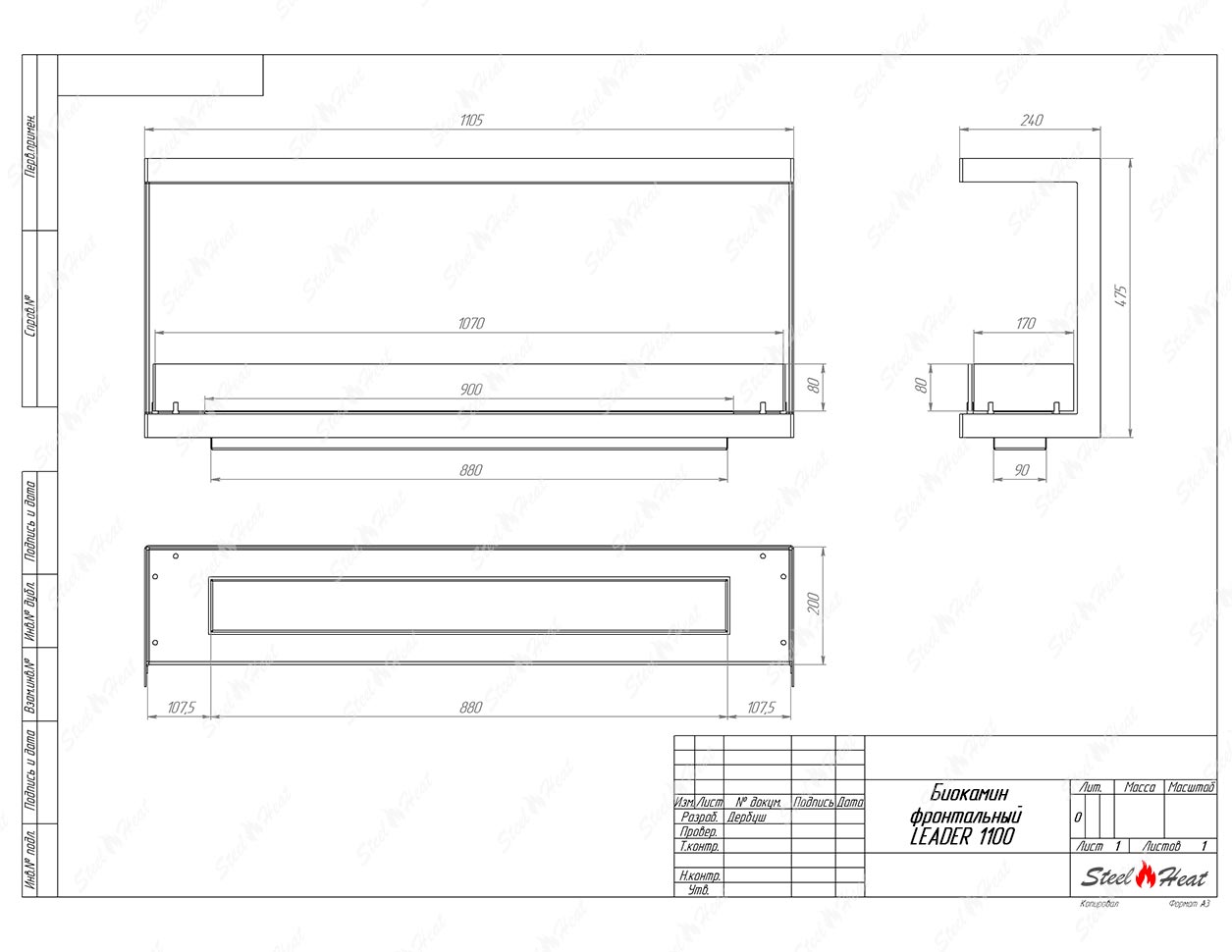 Встраиваемый Биокамин фронтальный SteelHeat Leader 1100предназначен для встраивания в глухие ниши из гипсокартона, кирпича, пеноблоков, бетона.