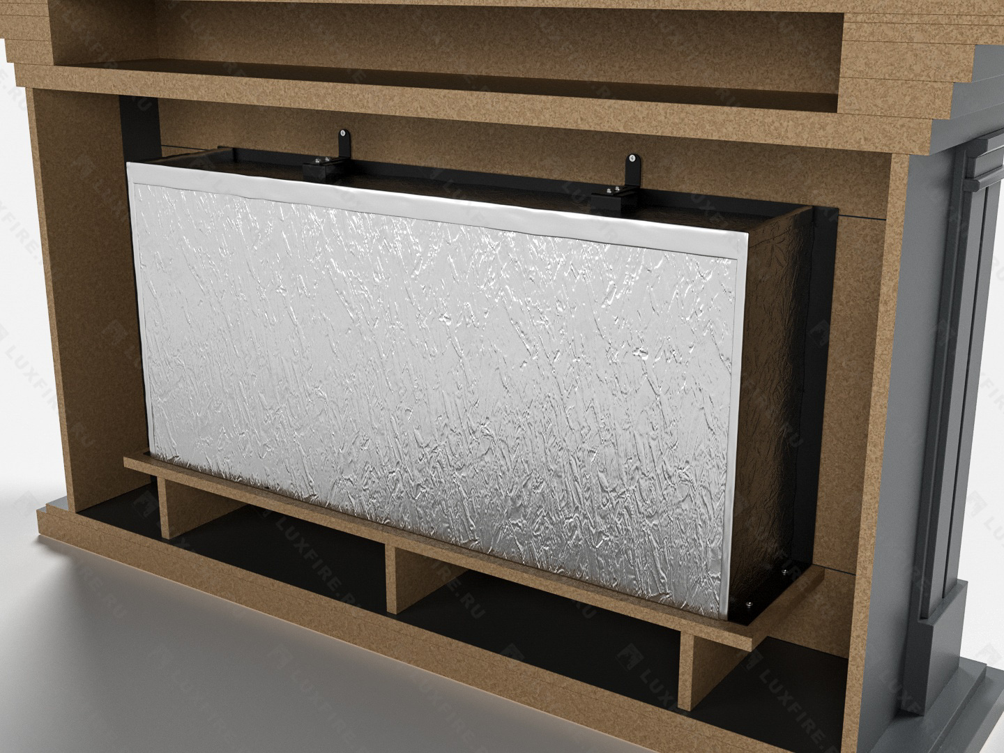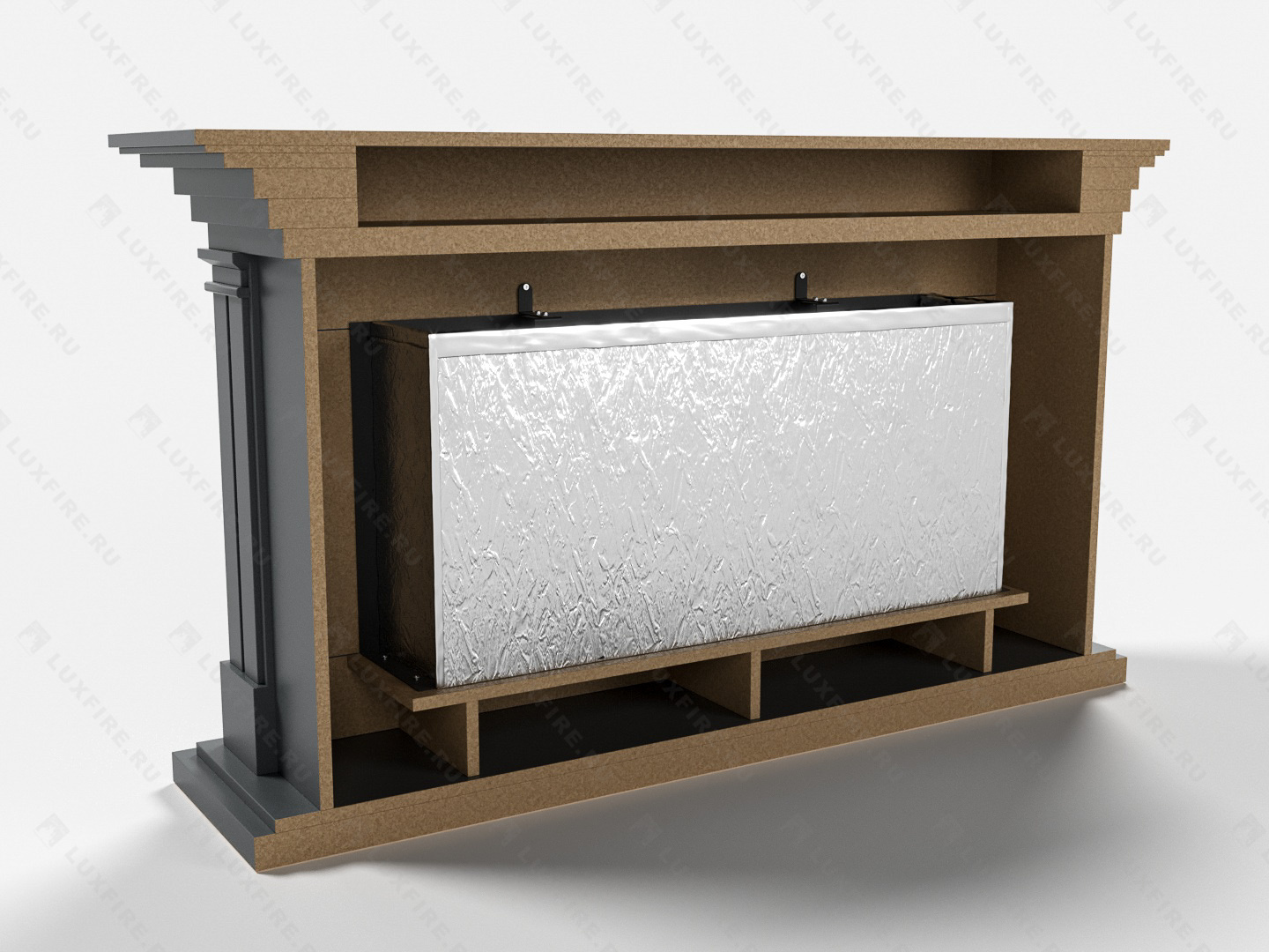 Представляет собой сборную окрашенную конструкцию из МДФ c портальным биокамином Lux Fire "Фаер Бокс 1-42"