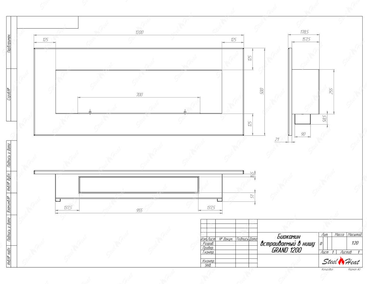 Встраиваемый Биокамин SteelHeat GRAND 1200 предназначен для встраивания в глухие ниши из гипсокартона, кирпича, пеноблоков, бетона.