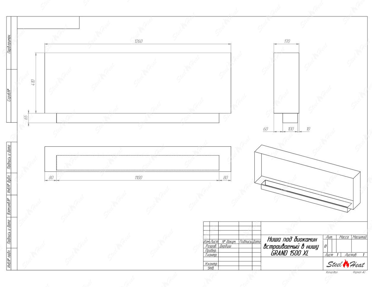 Встраиваемый Биокамин SteelHeat GRAND 1500 XL предназначен для встраивания в глухие ниши из гипсокартона, кирпича, пеноблоков, бетона.