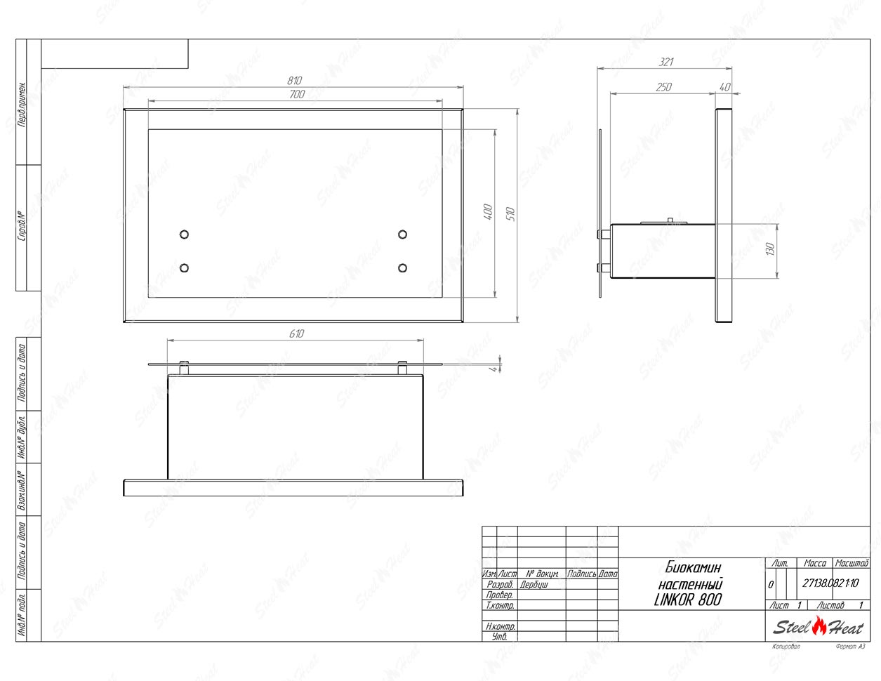 Биокамин LINKOR 800 навешивается на стену из кирпича, пеноблоков, бетона и не требует специально оборудованной ниши.