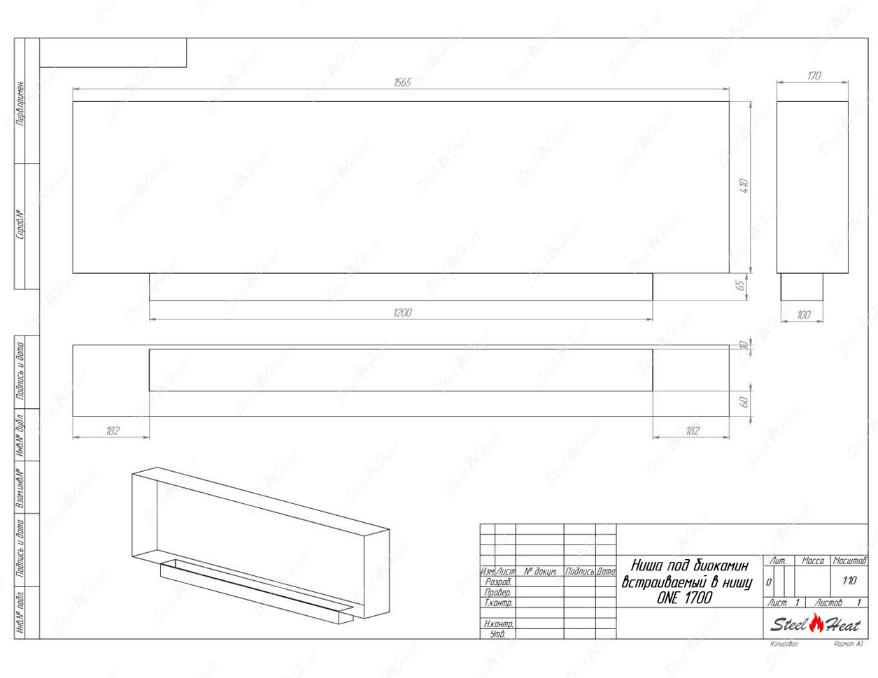 Встраиваемый Биокамин SteelHeat ONE 1700 предназначен для встраивания в глухие ниши из гипсокартона, кирпича, пеноблоков, бетона.