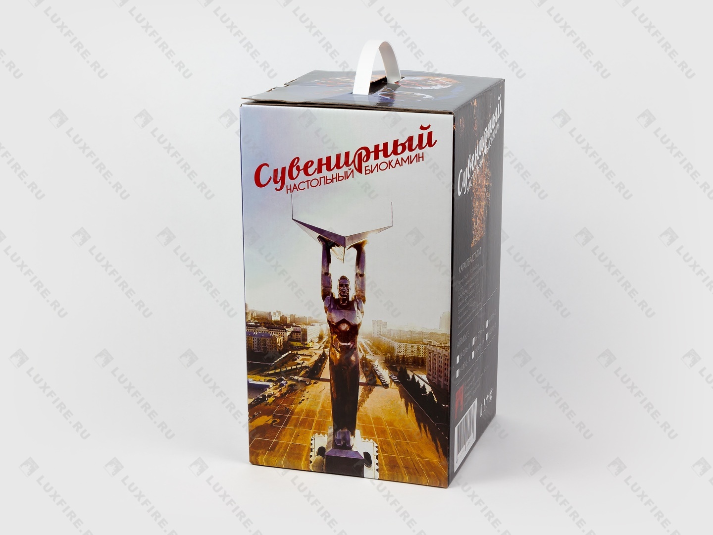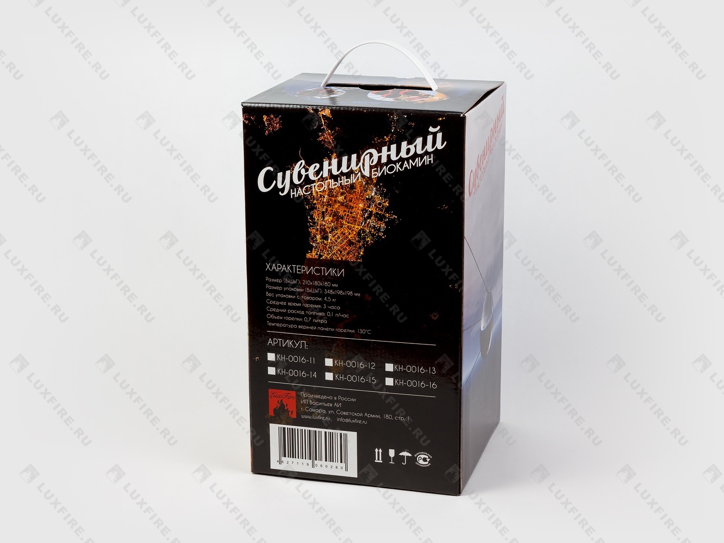 Представляет собой металлический внешний корпус с встроенным топливным блоком Lux Fire 150-2 на декоративных ножках в виде Снеговиков. Огонь ограничивается стеклянным закаленным плафоном диаметром 180 мм.