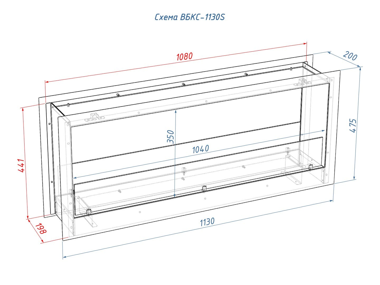 Описание встраиваемого биокамина Lux Fire Сквозной 1130 S
