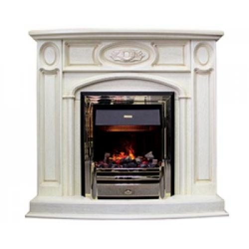 Очаг «Opti-Myst Cavendish» также имеет интересный дизайн. Выполнен он в классическом строгом стиле, а передняя его часть выполнена в виде каминной решетки. Задняя стенка имитирует покрытие из чугунных пластин. Такое дизайнерское решение довольно свежее, что делает внешний вид камина более оригинальным. Золотой цвет очага отлично гармонирует с цветом белого дуба.
