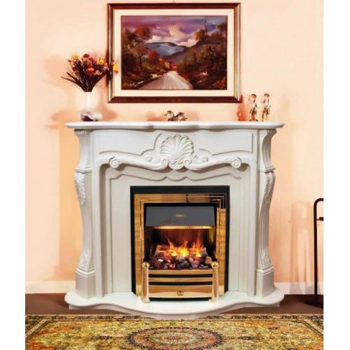 Или традиционно оформить электрокамин мрамором в классическом стиле, придав помещению благородный вид.