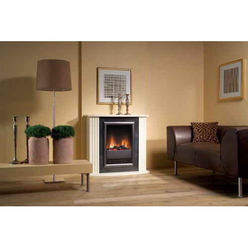 Основание электрического камина в сборе с порталом исполнено из металла - электрокамин и МДФ - портал. В комплекте идет пульт для дистанционного управления. Кроме этого, именно в этой модели есть специальный режим для регулировки яркости пламени и топки. Цвет очага - черный, в комплекте идет муляж прогоревших дров, а также термостат. Есть две ступени нагрева, декоративный режим, а также обогрев.